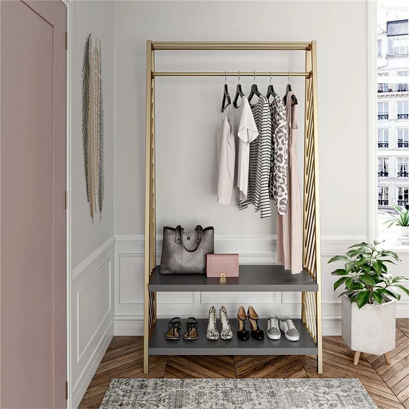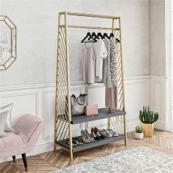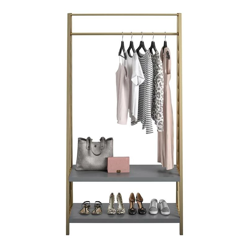 Spice up your entryway with the Brielle Entryway Storage Bench. Available in graphite gray and accented by a trendy gold frame or white with a black frame, the Brielle is designed with all of your shoe storage ~needs~ in mind. Two sturdy lower shelves keep your flame shoes on display while the clothing rod keeps your coats and tomorrow’s OOTD in perfect condition.