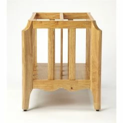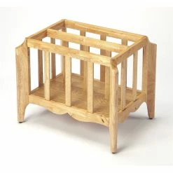 Store magazines and periodicals in this stylish magazine basket. Crafted from rubberwood solids and wood products with oak veneers, it features a refined Natural wood finish with slatted side panels and a center panel to organize the interior space into two compartments.