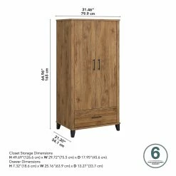 Create a relaxing atmosphere in your home with the Bush Furniture Somerset Tall Entryway Cabinet with Doors and Drawer. Keep outerwear organized behind cabinet doors that open and close on smooth Euro-style hinges. One shelf is fixed for stability and two can be raised or lowered to accommodate items of various sizes. An optional closet rod is included for additional storage. The bottom drawer pulls out to provide easy access to footwear. Each shelf supports up to 50 pounds of materials while the drawer has a weight capacity of 30 pounds. The tall cabinet’s stable design and included wall attachment hardware make it a safe, reliable choice for the family home. This tall mudroom storage cabinet has been meticulously tested to meet or exceed industry standards for safety, durability and performance and is backed by a 6 year warranty. American made with U.S. and imported parts.