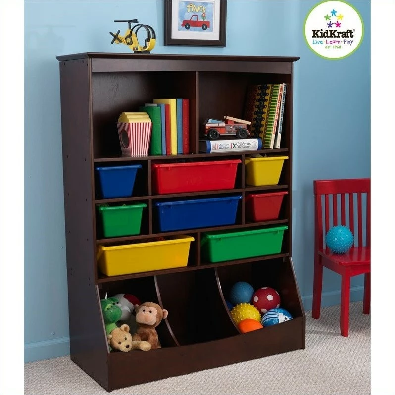 Lowest price online On all KidKraft Wall Storage Unit with Bins in Espresso – 14982