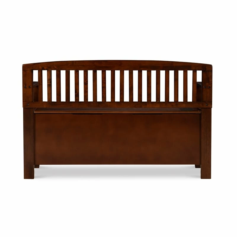 Create added seating and storage to your foyer or mudroom with this attractive and functional Cynthia Storage Bench. The bench features a flip top lid, allowing the user to easily retrieve articles from the storage compartment. The slat designed back and sides are enhanced by the walnut finish.