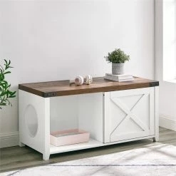 Top 10 ๐ Walker Edison 43″ Sliding X Door Litter Box Bench With Circle Cutout In Gray Wash ๐