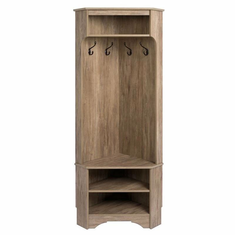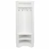 Bring organization to one of the busiest areas of the home with the Pemberly Row Corner Hall Tree. This organizer has a compact functional design that is ideal for tight entryways, hallways, mudrooms, etc. A row of 4 hooks keeps scarves, jackets, umbrellas at hand and the 3 compartments are a convenient spot for storing baskets, shoes, keys, mail and any other entryway clutter.