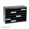 Almost too E-Z! Quality-built, premium steel unit has a strong steel frame, shelves, and dividers with a solid fiberboard back. Interlocking design of the shelves and dividers add extra strength to hold up to the heaviest load. Wide shelf fronts serve as generous label holders. Unit features twenty-four letter-size compartments. Each compartment will hold up to 750 sheets. The mail organizer can be placed on the floor, desk or table, and can even be mounted to a wall with optional Wall Mount Brackets (9200BL).
