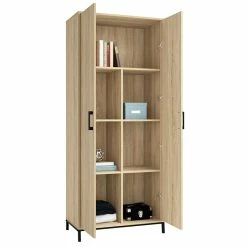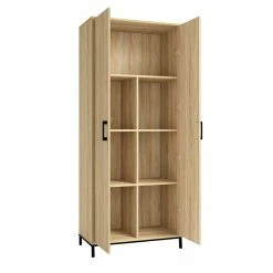 Looking to add a little extra storage to your home? We’ve got you covered! Create the additional storage options your home needs without having to sacrifice on the style that you love with this tall storage cabinet from the North Avenue® collection. Behind its two large doors, this storage cabinet with shelves offers ample space for all your things. It includes four adjustable shelves that can move to different heights to create flexible storage for items of all shapes and sizes. This 2 door storage cabinet provide you with all the room you need to stow away various household items like your collection of books or board games. It also includes a full upper shelf for larger items likes towels and spare blankets. It has room for all your things! Finished in Charter Oak™ and detailed with a durable, black metal base and hardware, this double door storage cabinet will have you feeling clutter-free in no time.