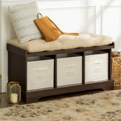 Best deal ๐ Pemberly Row 3 Cubby Cushion Storage Bench In Espresso With Totes ๐ฏ
