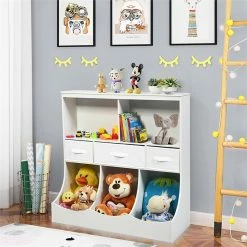 Best reviews of ๐ Costway Wood Freestanding Combo Shelf Cubby Bin With 3 Baskets In White โ