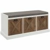 Promo ๐ Walker Edison 46″ Mid Century Storage Bench With Cushion In Dark Walnut/Gray ๐