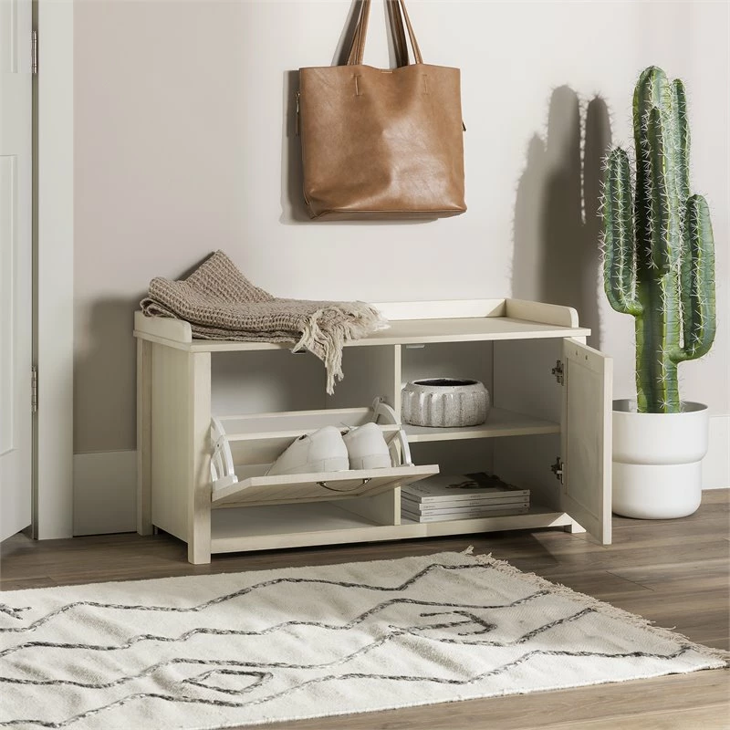 Be the first to review “Outlet 💯 Walker Edison Modern Farmhouse Tray Top Grooved Drop Down 👟 Shoe Storage Bench In White Wash 😉” Cancel reply